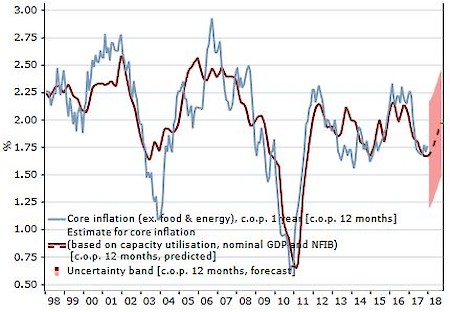 Mit einiger Verzögerung im Verhältnins zu der zyklischen Wachstumsverbesserung der letzten Quartale, scheint die US-Inflation erst einmal ihren Tiefpunkt erreicht zu haben. "Ganz anders noch vor 12 Monaten, als unser Inflationsmodell einen weiteren Rückgang der US-Kerninflation signalisierte und wir entsprechend auf Duration gesetzt hatten", meint der Senior-Makrostratege. Auch der jüngste Ölpreisanstieg der natürlich in gewisser Weise mit den oben genannten Effekten korreliert ist habe sehr wahrscheinlich Anleihenverkäufe ausgelöst.