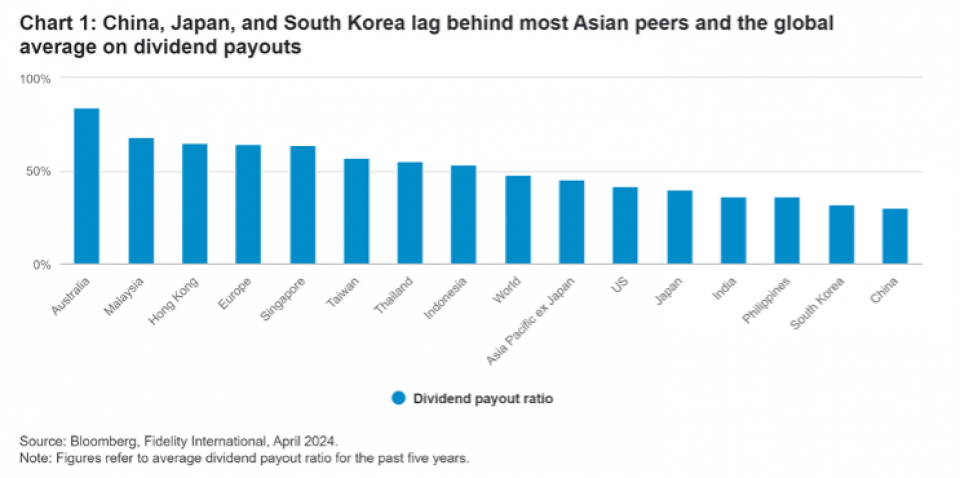 Diese Strukturreformen sind laut Fidelity nicht zufällig. Die durchschnittlichen Ausschüttungsquoten chinesischer, südkoreanischer und japanischer Unternehmen lagen in den letzten fünf Jahren bei 30, 32 respektive 40 Prozent. Der weltweite Durchschnitt liegt bei 48 Prozent, in Europa sind es 64 Prozent.