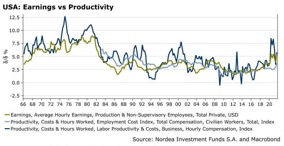 Steigende Inflation ist kein allzu grosses Problem, solange private Haushalte über ausreichend grosse Ersparnisse verfügen. Doch sobald diese finanziellen Polster schwinden, reagieren die Menschen weniger entspannt. Sie beginnen sich zu fragen, wie sie für ihre üblichen Ausgaben für Transport und Lebensmittel aufkommen können, wenn die Preise weiter steigen. "Da das Lohnwachstum oft kaum mit der Inflation Schritt hält, wächst langsam aber sicher die Verärgerung", erklärt Sébastien Galy, Senior Macro Strategist bei Nordea Asset Management.