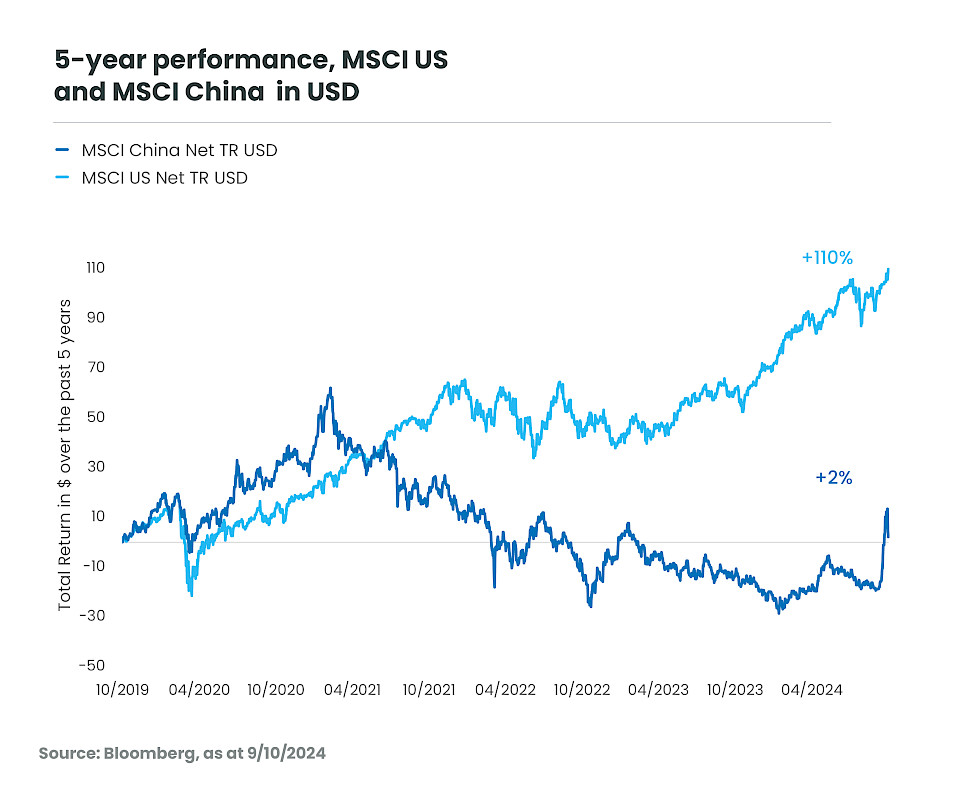 Die chinesischen Behörden haben begonnen, den Deflationsdruck durch eine Reihe von geld- und fiskalpolitischen Massnahmen zu bekämpfen und signalisieren damit ihre zunehmende Dringlichkeit, die Wirtschaft zu stabilisieren. Während China versucht, seinen Immobiliensektor zu stärken und das inländische Wachstum zu fördern, könnten die Wahlen in den USA laut Salazar die Handelsspannungen erneuern, was zu neuen Zöllen und einer Währungsabwertung führen könnte. Infolgedessen werde das Stock-Picking in China immer wichtiger.