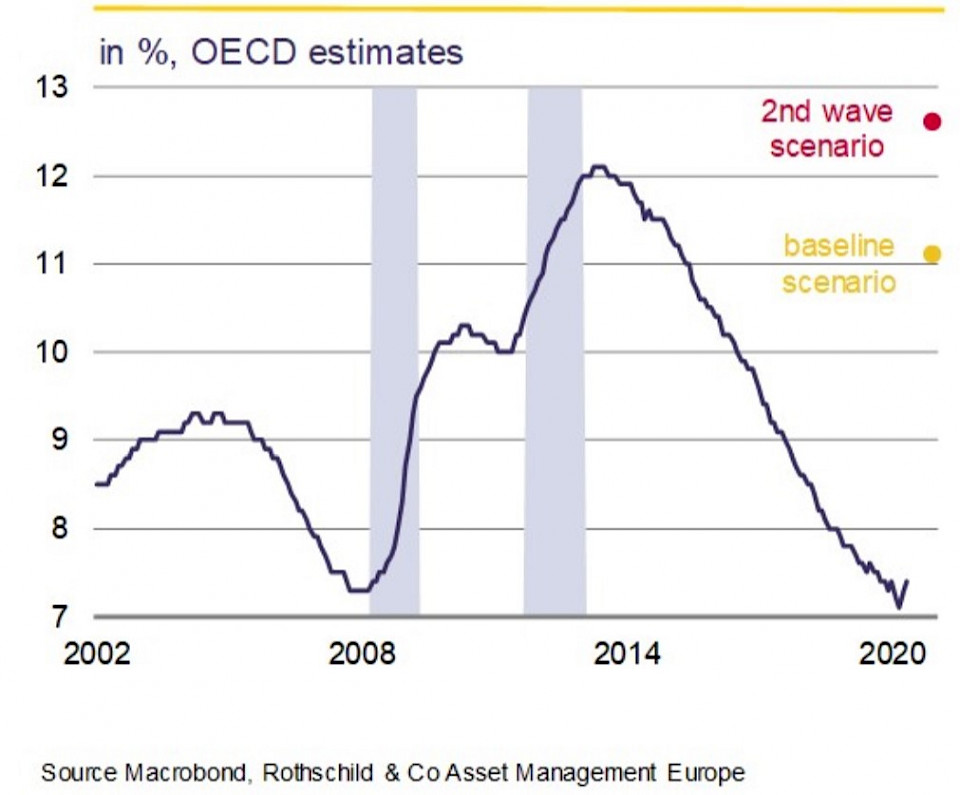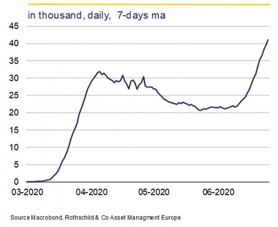 "Tatsächlich könnte das Erbe der Pandemie sogar noch tiefreichender und dauerhafter sein als das der grossen Finanzkrise von 2008/09. Daher ist eine V-förmige Erholung höchst ungewiss. Das Risiko einer W-förmigen Erholung hat sich aufgrund der starken Zunahme neuer COVID-19-Fälle und des anhaltenden Schocks erhöht. Dies könnte zu einer Verschärfung der globalen Finanzlage führen, da Investoren, die derzeit auf eine rasche Konjunkturerholung eingestellt sind, eine viel langsamere und holprigere Erholung einpreisen werden", meint Collard.
