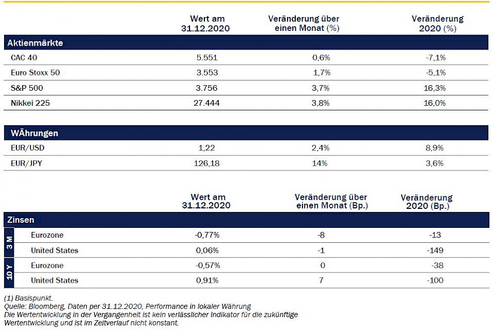 Die Pandemie fordert weiterhin einen hohen Tribut von Wirtschaft und Gesellschaft. Auf der Nordhalbkugel haben die Ferienzeit und das kalte Wetter zu einem erneuten Anstieg der Infektionen geführt und viele Länder gezwungen, die Beschränkungen zu verschärfen. In den USA erreicht die Zahl der Klinikaufenthalte und der täglichen Todesfälle neue Höchststände, es gibt aber bisher keine allgemeine Strategie, sondern jeder Bundesstaat bleibt für die Gestaltung seines Krisenmanagements verantwortlich. Deutschland hat beschlossen, die partiellen Beschränkungen zu verlängern und zu verschärfen, was bedeutet, dass die meisten Non-Food-Geschäfte, Restaurants, Kultur- und Freizeiteinrichtungen sowie Schulen mindestens bis Ende Januar geschlossen bleiben.