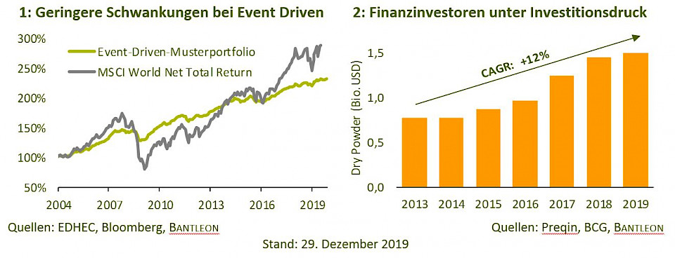 "Die Ertragsperspektiven für die nächsten Monate sind sehr gut. So hält der Boom am Markt für Fusionen und Übernahmen (M&A) an: Unternehmen sowie Private-Equity-Gesellschaften verfügen über Bargeldreserven in Rekordhöhe und aktivistische Aktionäre treiben strukturelle Veränderungen in Unternehmen mit hoher Dynamik voran. Dieses Umfeld bietet attraktive Anlagechancen für Event-Driven-Fonds und ermöglicht Investoren eine relativ hohe, marktunabhängige Rendite", betont Oliver Scharping, Portfolio Manager Globale Aktien bei Bantleon.