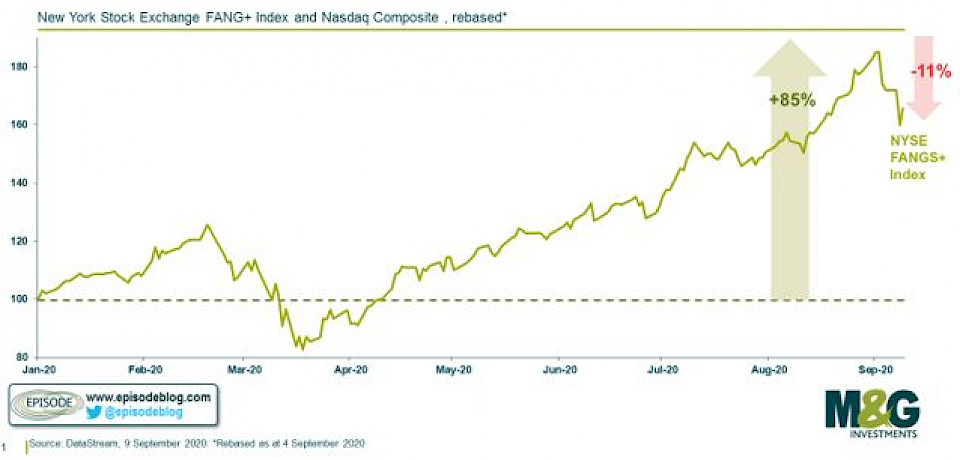 Nach atemberaubenden Kursgewinnen in diesem Jahr hat der US-Technologiesektor innerhalb von nur vier Handelstagen rund 10% verloren. Der New York Stock Exchange FANG+ Index hatte seit Anfang 2020 um 85% zugelegt und notierte sogar 50% über seinem Höchststand vor Covid-19. Erleben wir gerade, wie eine Technologieblase platzt, hinterfragt das M&G Investments’ Multi Asset Team.