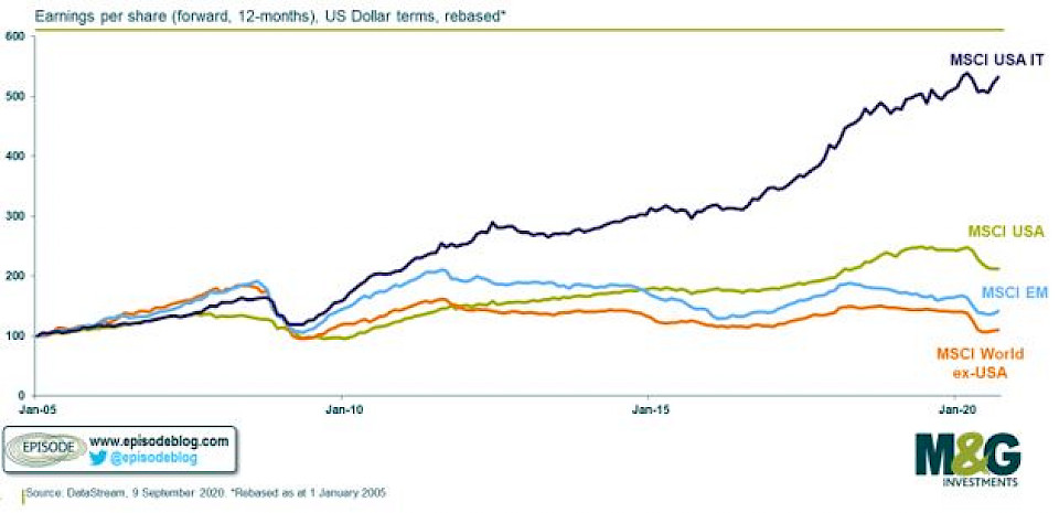 "Value-Anleger und solche, deren Aufgabe darin besteht, passive Indizes zu übertreffen, mag dies zwar irritieren, doch man kann nicht sagen, dass die langfristige Dominanz der USA und des Technologiesektors völlig losgelöst von der Realität ist", meinen die M&G-Experten. Das gelte für dieses Jahr, aber auch langfristig betrachtet. Es sei häufig die Rede davon gewesen, dass die Umsätze von Technologiefirmen in der Lockdown-Phase robuster waren und in einigen bemerkenswerten Fällen sogar von ihr profitiert hätten.