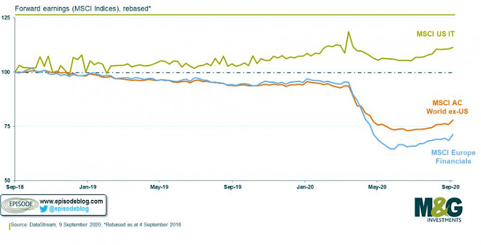 Es gibt laut den M&G-Experten auch deutliche Hinweise dafür, dass die Anleger in Ermangelung der Gewinn-Story anscheinend nach anderen Argumenten suchten, um eine Präferenz für diese Aktien zu rechtfertigen. Ein gängiges davon sei: Weil Technologieunternehmen häufig Vermögenswerte mit langer Duration darstellen (in ihrem Ertragsprofil sind Gewinne in der Zukunft viel wichtiger als Dividenden heute), sind ihre Kurse deshalb gestiegen, weil die Zinssätze sinken und mehr positive Impulse gegeben werden.