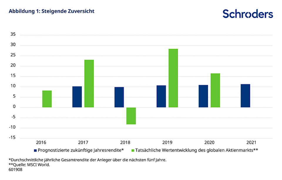 Die neueste Global Investor Study von Schroders zeigt, dass Investorinnen und Investoren trotz der anhaltenden pandemiebedingten Turbulenzen die zukünftigen Aktienmarktrenditen sehr optimistisch einschätzen. Trügt dieses Gefühl?