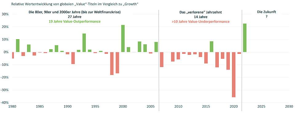 Quelle: MSCI World Value – Growth, Refinitiv Datastream, 31. Dezember 2022.