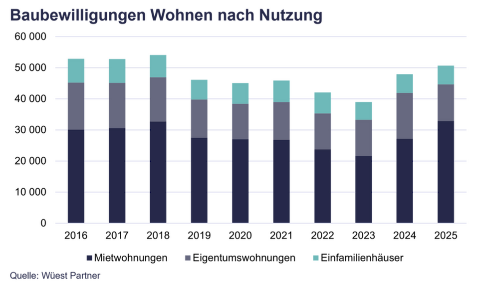 Für 2025 prognostiziert Wüest Partner zwar eine erneute Zunahme der Investitionen in Wohnbauten. Dennoch bleibt das Volumen deutlich unter dem Niveau, das für eine nachhaltige Entspannung der Wohnungsnot erforderlich wäre. Eigentlich müsste sich Bauen in diesem Marktumfeld lohnen. Doch die Bautätigkeit ist in den vergangenen Jahren nicht signifikant gestiegen – weder bei den direkten Bauinvestitionen noch bei der Zahl der Baugesuche.