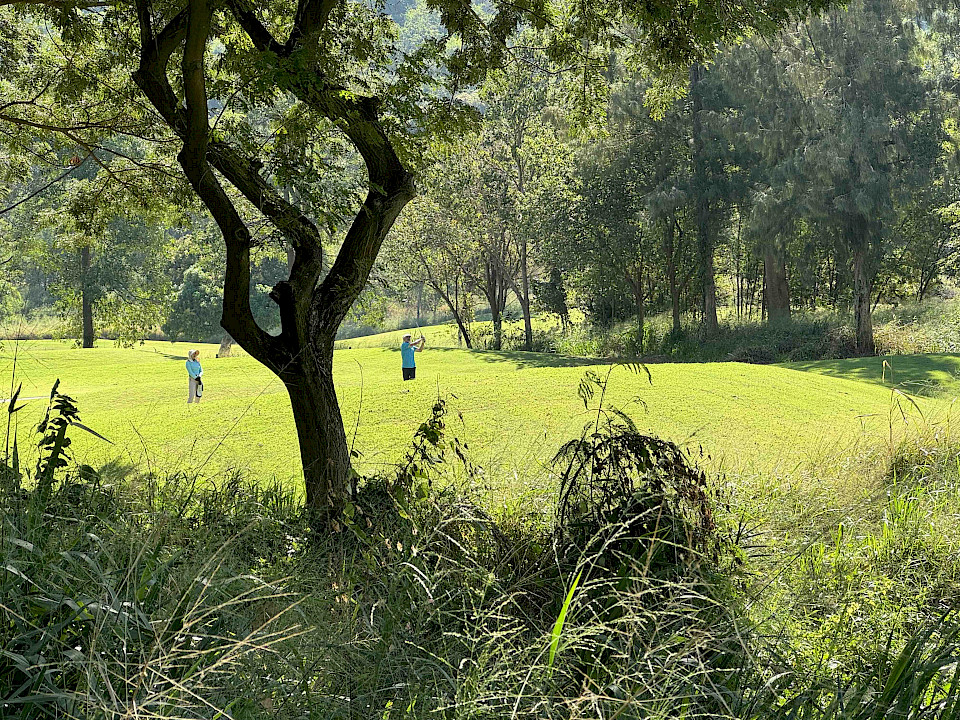 Deutlich grösser ist der Andrang in Black Mountain. Hier geht es nach dem flachen Start fast ständig rauf und runter, die Grüns sind pfeilschnell und der Rat der Caddies ist auch hier gefragt. Nirgends kommt mehr Wasser ins Spiel. Auffallend ist das satte Grün des in die Ausläufer eines bewaldeten Bergmassivs gebauten Platzes, das einen knackigen Kontrast bietet zum Schwarz der Granitfelsen und zu den steinigen Bachläufen, die den Platz durchziehen. Je nach gewähltem Abschlag ist der Platz schwierig bis sehr sehr schwierig. Auch hier helfen die Caddies unter anderem bei der Wahl der passenden Teeboxen. Das gleiche gilt für den Banyan Golf Club, für mich nochmals eine Steigerung in Punkto «Spitzenplatz».