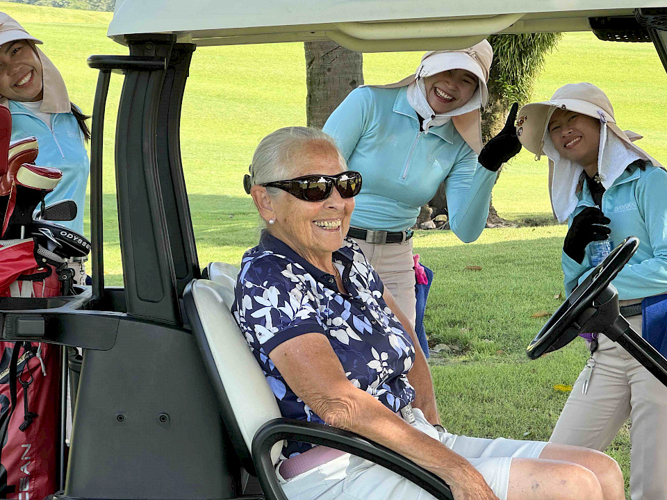 Auf dem dritten Grün zeigt Koy weit links neben der Fahne den idealen Punkt, ohne ihr geschultes Auge wäre mein Ball nicht mal in die Nähe des Loches gerollt. Ihre zu über 90 Prozent weiblichen Kolleginnen sind nicht immer leicht zu verstehen: Die Asiaten können bekanntlich das «r» nicht richtig aussprechen: «Velly down» heisst entsprechend es geht auf dem Grün deutlich nach unten, leicht rechts zielen tönt meist etwa so «two holes light» und nur selten geht es ganz gerade aus: Dann heisst die Anweisung von Koy und Co. meist «Tongtong», das ist eines der wenigen Worte, dass ich auf Thai verstehe.