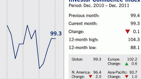 Das Anlegervertrauen in Nordamerika und Asien ist im Dezember leicht gesunken, Europa hingegen verhielt sich gegen den Trend. Dies zeigt der State Street Investor Confidence Index für Dezember 2011.