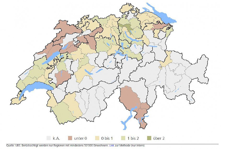 Setzen sich die langfristigen Zinsen über längere Zeit zwischen minus 0,75 und minus 1% fest, so dürften auch die Hypothekarzinsen ihren Sinkflug fortsetzen, erwarten die Autoren. Sofern sich die Beschäftigungs- und wirtschaftlichen Aussichten nicht komplett eintrüben, würden die tieferen Finanzierungskosten den breiten Eigenheimmarkt in einer ersten Phase wohl stützen. Im Marktdurchschnitt wären damit nur moderate Preisrückgänge zu erwarten. Allerdings dürfte das Thema der Erschwinglichkeit mit schwächerer Konjunktur stärker in den Vordergrund rücken. In Regionen, wo Wohneigentum mit den lokalen Einkommen noch bezahlbar ist und die Tragbarkeitskriterien erfüllt werden können, dürfte der Markt laut UBS CIO GWM weniger stark von einem Wirtschaftseinbruch tangiert sein als in den teuren Zentren und Tourismusregionen.
