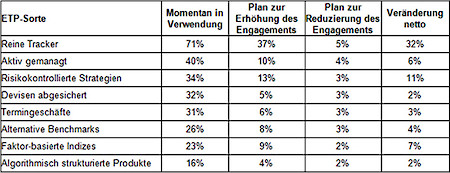 Nur etwas mehr als ein Drittel aller Befragten gaben an, risikokontrollierte ETPs zu verwenden, und 13% möchten ihr Engagement in diesem Bereich verstärken, verglichen mit lediglich 3%, die angeben, dies reduzieren zu wollen.