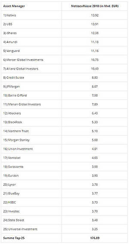 Top 25 der europaweit absatzstärksten Asset Manager Quelle: e-fundresearch.com