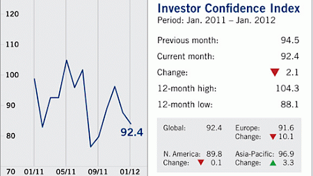 Ungeachtet der jüngsten Rally im Januar liegen die Kurse an den weltweiten Aktienmärkten nach wie vor rund 10% unter dem im April 2011 verzeichneten Kurzzeit-Hoch, fügte O'Connell hinzu. Der beträchtliche Rückgang des europäischen Investor Confidence Index macht deutlich, dass der ungewisse Ausgang der europäischen Schuldenkrise weiterhin das Denken und Handeln der Anleger bestimmt. Ein Blick auf die zugrunde liegenden Daten zeigt, dass Anleger im Januar in gewissem Umfang neue Anlagen in Emerging Market-Aktien getätigt haben. Es bleibt abzuwarten, ob diese Kapitalflüsse im Laufe des Quartals umfangreiche Engagements an weiteren Märkten nach sich ziehen werden.