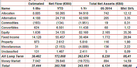 In den ersten fünf Monaten 2014 flossen 203 Milliarden Euro neu in die europäischen Fondsmärkte, wie Daten von Morningstar zeigen.