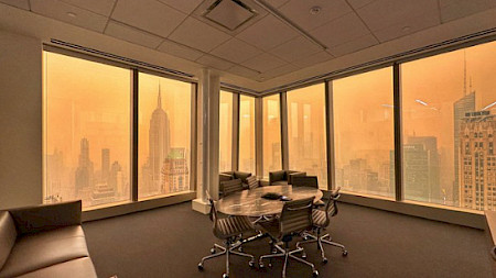 Die Schwaden Hunderter Feuer im Osten Kanadas zogen in südliche Richtung und führen beispielsweise in New York zu einem nebligen Schleier und einer zeitweise orangen Färbung des Himmels.