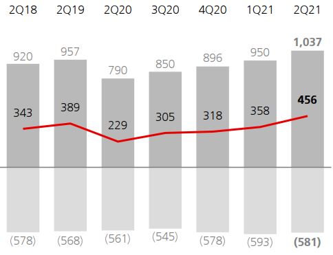 Die Rendite auf das harte Kernkapital1 (CET1) betrug 19,3%. Zum Quartalsende beliefen sich die harte Kernkapitalquote (CET1) auf 14,5% (Ziel: ~13%) und die Leverage Ratio des harten Kernkapitals (CET1) auf 4,09% (Ziel: >3,7%), was einem Anstieg beider Kennzahlen gegenüber dem Vorquartal entspricht. Im ersten Halbjahr 2021 hat die UBS im Rahmen unserer Aktienrückkaufprogramme eigene Aktien im Wert von USD 1,4 Mrd. zurückgekauft. Im dritten Quartal 2021 will die Grossbank eigene Aktien in Höhe von USD 0,6 Mrd. zurückkaufen.