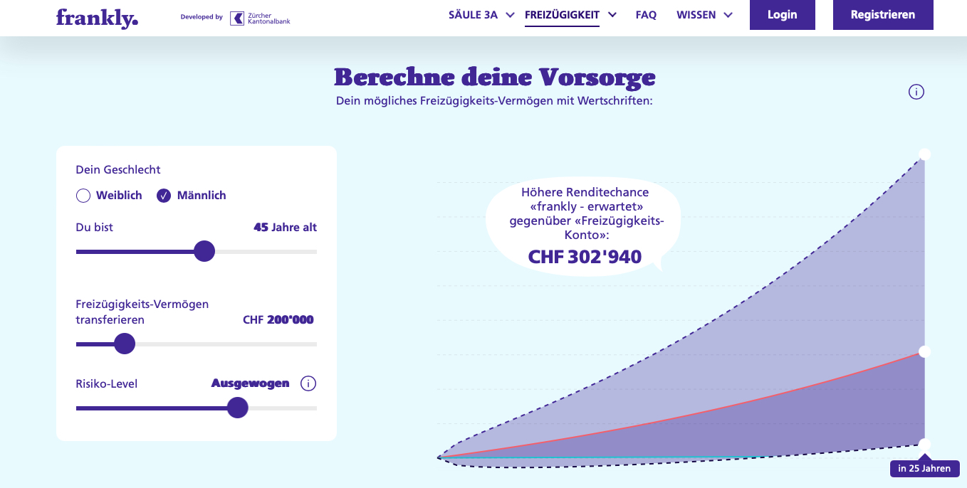 frankly wurde im März 2020 als digitale Lösung für das Wertschriftensparen in der Säule 3a lanciert – entwickelt von der Zürcher Kantonalbank. Investiert wird in Swisscanto-Anlageprodukte. Heute beträgt das verwaltete Säule-3a-Kundenvermögen rund 1,9 Milliarden Franken bei über 80'000 Kundinnen und Kunden.