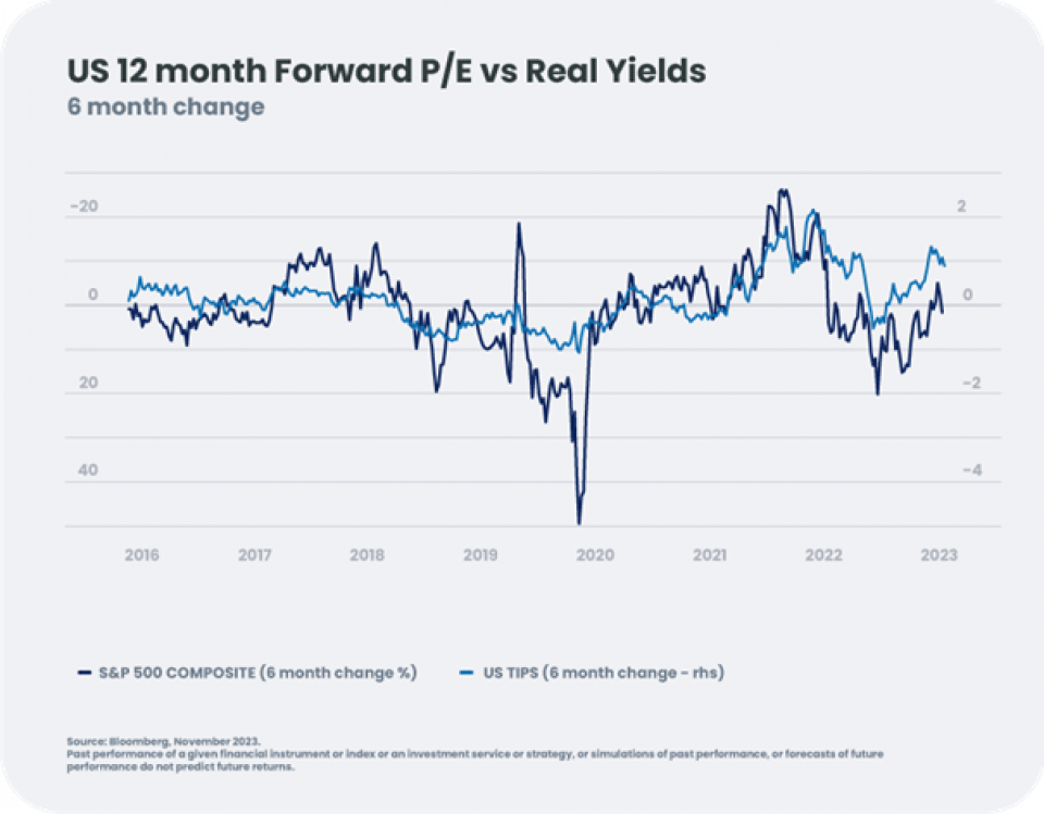 Für 2024 gehen wir davon aus, dass sich das Wachstum verlangsamen und die Inflation weiter sinken wird, was zu einem Abwärtsdruck auf die Realzinsen führen und ein günstiges Umfeld für die Aktienmarktbewertungen schaffen dürfte.