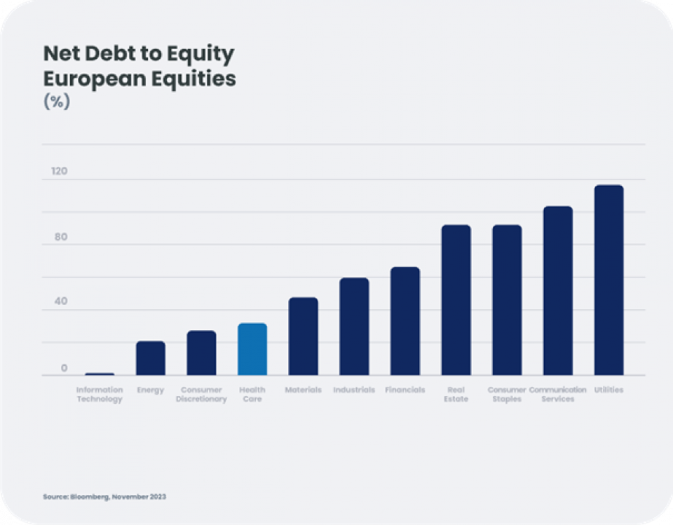 Daher bevorzugen wir Unternehmen, die am besten in der Lage sind, ihre Margen zu verteidigen, über eine solide Bilanz verfügen und in der Lage sind, von einem Zinsrückgang im Jahr 2024 zu profitieren, beispielsweise Aktien aus dem Gesundheits- und Basiskonsumgüterbereich: