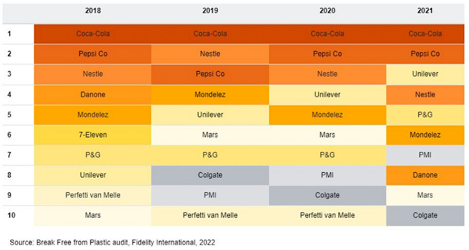 Coca-Cola, das mit Abstand grösste Erfrischungsgetränkeunternehmen der Welt und der grösste Plastikverbraucher, hat laut Fidelity seine Abfüllung schon vor langer Zeit an ein Netz regionaler Anbieter ausgelagert. Deren Leistungen in Sachen Nachhaltigkeit sind unterschiedlich, aber Coke hat sich verpflichtet, bis 2025 alle Plastikflaschen recycelbar, kompostierbar oder wiederverwendbar zu machen, und die meisten seiner Abfüller haben diese Ziele bereits fast erreicht.
