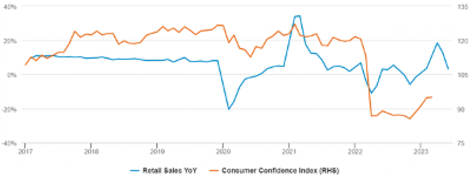 Quelle: Wind, China National Bureau of Statistics, Fidelity International, Juli 2023. Anmerkung: Die Daten zu den Einzelhandelsumsätzen im Februar zeigen das kombinierte Ergebnis für Januar und Februar.