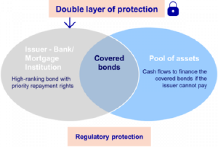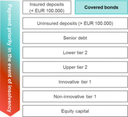 Eines der grössten Risiken für Anleihenanleger besteht in der Zahlungsunfähigkeit eines Emittenten. Besicherte Anleihen, die von Banken oder Hypothekenbanken begeben werden, bieten Anlegern eine doppelte Rückgriffsmöglichkeit und damit grösstmöglichen Schutz. Die erste Schutzschicht betrifft den Emittenten, denn besicherte Anleihen haben innerhalb der Kapitalstruktur die höchste Zahlungspriorität (sie stehen im gleichen Rang wie gesicherte Einlagen bis 100.000 Euro). Somit sind sie sicherer als vorrangige Anleihen. Die zweite Schutzschicht bildet der zugrunde liegende Aktiva-Pool (Deckungsstock).