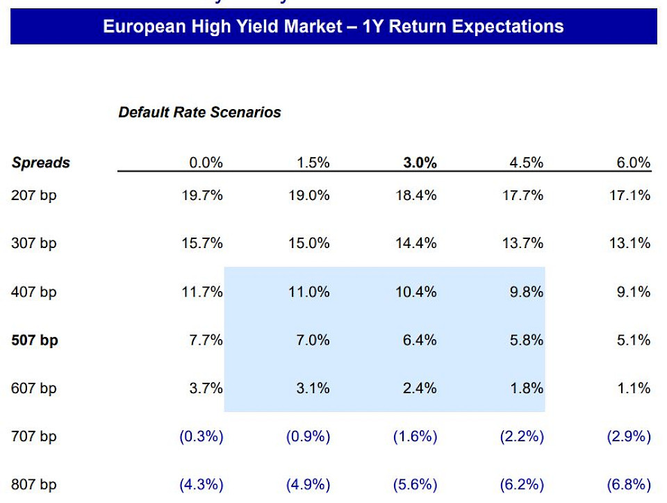 Die Aussichten für Fixed-Income-Investoren seien aber nicht schlecht, sagt Näf. In der Vergangenheit hätten Spreads über dem aktuellen Niveau in der Regel zu attraktiven 3-Jahres-Renditen geführt. Bei einer erwarteten Ausfallrate von 3 Prozent und einem Spread-Niveau von 507 Basispunkten könnte in den nächsten zwölf Monaten gemäss einer Sensitivitäts-Analyse von Capital Four eine Rendite von 6,4 Prozent erreicht werden.