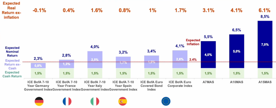 Anders sehe es aus, wenn das Portfolio mit verschiedenen Anlageklassen angereichert werde. Dann seien je nach Inflationsniveau annualisierte Realrenditen von etwa 3 bis 6 Prozent (brutto) möglich.