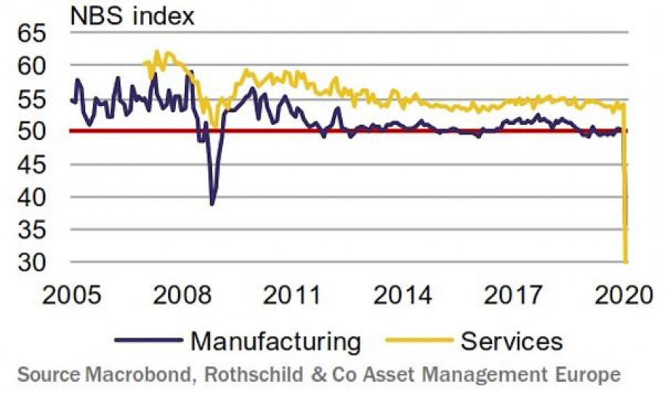 Als die ersten Corona-Fälle in China auftraten, glaubten die Investoren zunächst, dass es sich um einen vorübergehenden und isolierten Schock handelte. Tatsächlich zeige das Ausmass des Rückgangs der chinesischen Wirtschaft heute zweifellos die erheblichen negativen Auswirkungen des Coronavirus-Ausbruchs, kommentiert Marc-Antoine Collard von Rothschild & Co AM.