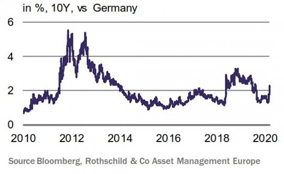 Italien ist zum grössten Zentrum geworden mit den meisten Corona-Fällen, die ausserhalb Chinas registriert wurden. Die Regierung hat strengere Quarantänemassnahmen eingeführt, um die Ausbreitung der Epidemie einzudämmen, da das Gesundheitssystem mit dem Patientenanstieg zu kämpfen hat. Alle Bewohner des Landes sollen zu Hause bleiben und dürfen nur aus beruflichen oder gesundheitlichen Anlässen reisen. "Die wirtschaftlichen Folgen dieser Massnahmen werden zweifellos beträchtlich sein, und eine technische Rezession – zwei aufeinanderfolgende Quartale mit einem Rückgang des BIP – erscheint jetzt fast sicher", sagt der Chefökonom von Rothschild & Co AM.