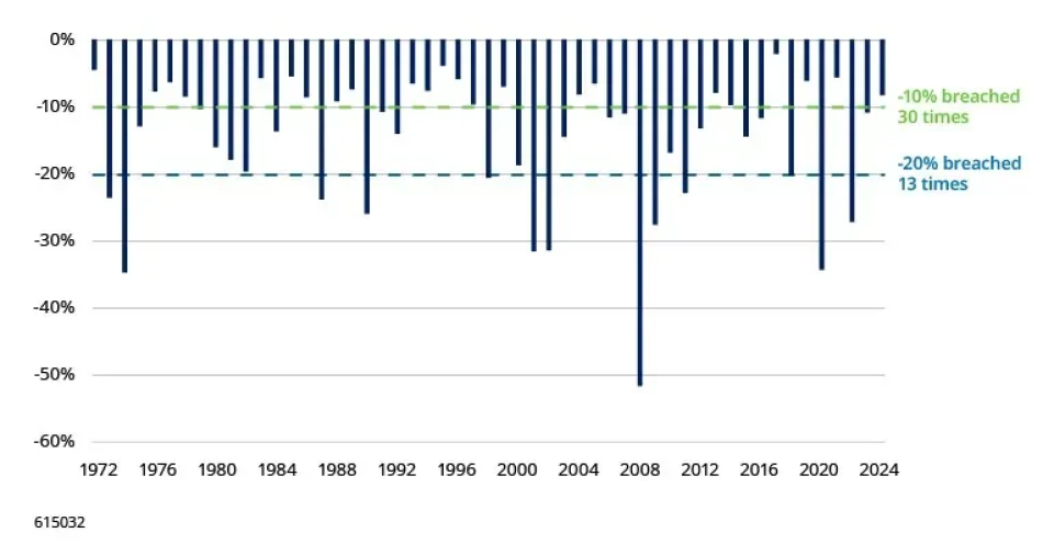 «Alle vier Jahre stürzt der Aktienmarkt um 20 Prozent ab, fast jedes Jahr um 10 Prozent. Trotzdem vergessen wir das immer wieder. Selbst als erfahrener Anleger fragt man sich: Bringt mir diese Statistik wirklich etwas, wenn mein Portfolio an Wert verliert?», schreibt Duncan Lamont, Head of Strategic Research bei Schroders.