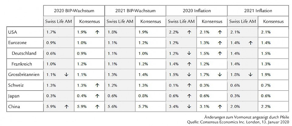 Die Gesamtinflation fiel im Dezember erneut leicht höher aus als erwartet. Angetrieben durch den Energiepreis-Basiseffekt dürfte die Inflation im Januar und im Februar bei ca. 2,5% ihren Höhepunkt erreichen, um dann wieder zu sinken. Der inländische Inflationsdruck hält sich im Rahmen, weil das Lohnwachstum abflaut. Die Kerninflation dürfte deshalb 2020 im Bereich von 2.0 bis 2,3% bleiben.