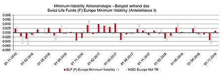 Diese Variante risikokontrollierter Strategien bietet zwar einen geringeren und weniger präzisen Schutz vor absoluten Verlusten, ist jedoch ein sehr effizientes Instrument, um die Volatilität in einem Portfolio zu kontrollieren. Diese ist mittelfristig signifikant tiefer als diejenige einer traditionellen Aktienanlage, während das Renditepotential vergleichbar ist. Minimum-Volatilitäts-Strategien eignen sich damit für Investoren, die ebenfalls eine Risikokontrolle anstreben, aber über eine höhere Risikofähigkeit verfügen.