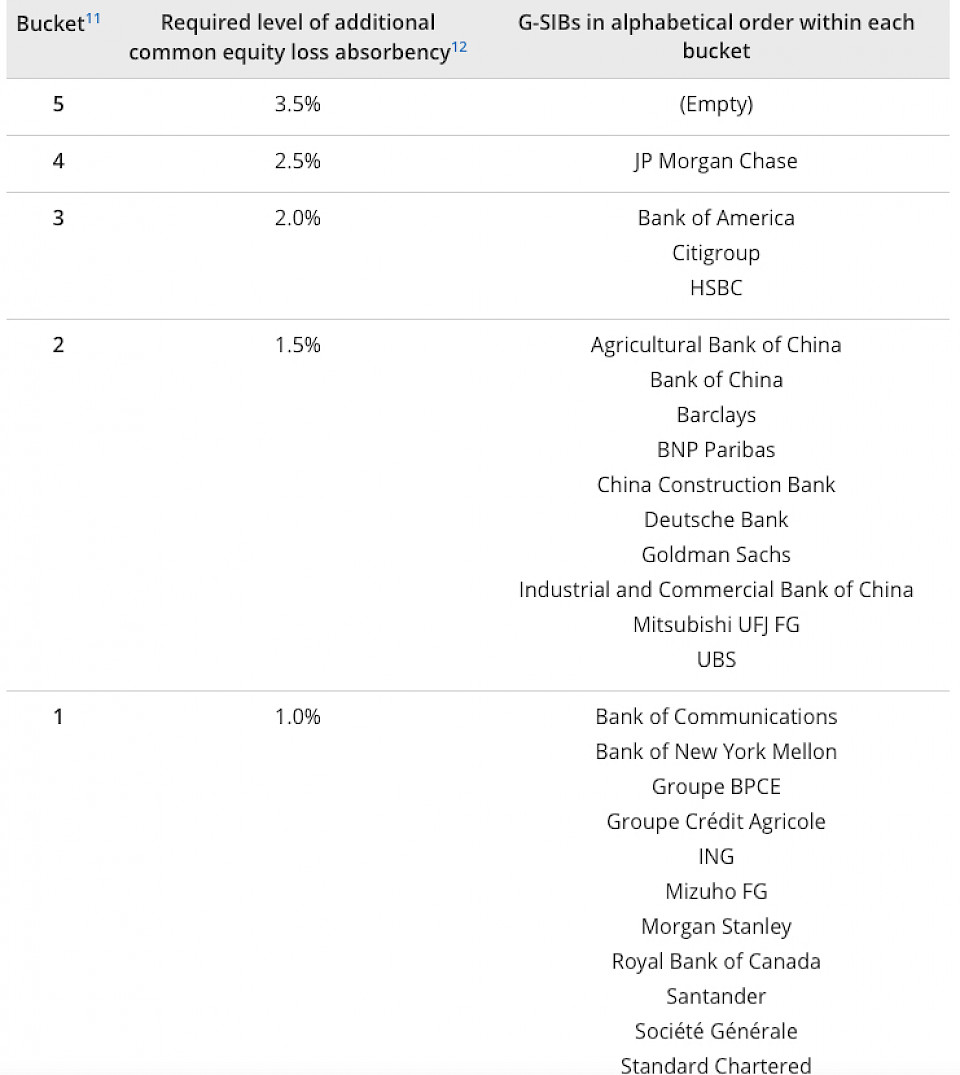 Der FSB überwacht im Auftrag der G20-Staaten die Gefahren für das weltweite Finanzsystem. Er bewertet die Banken nicht nur ihrer Grösse nach, sondern auch nach dem Risiko, das in ihren Geschäften steckt.