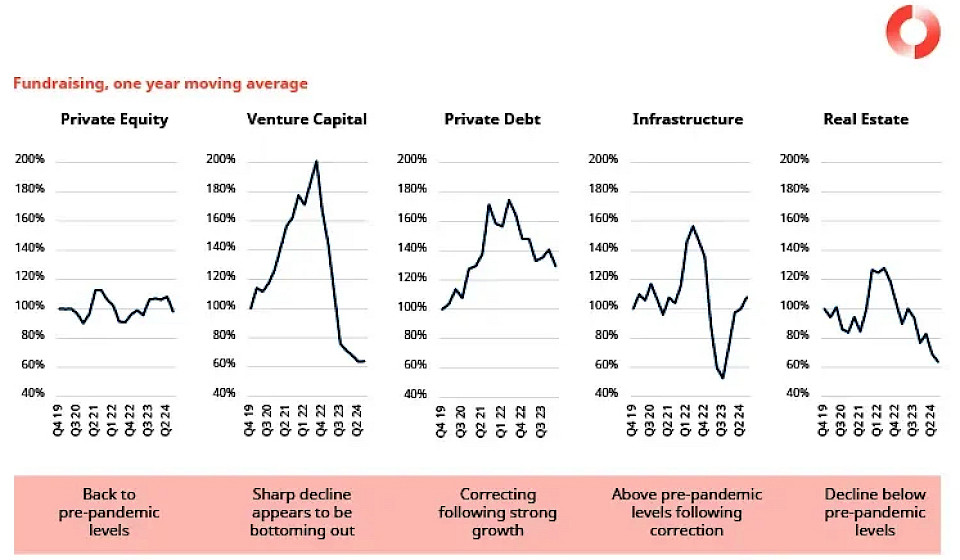 Quelle: Schroders Capital, Preqin Pro, Stand: 11. November 2024. Fundraising-Daten basieren auf dem Final Closing, indexiert auf Q4 2019.