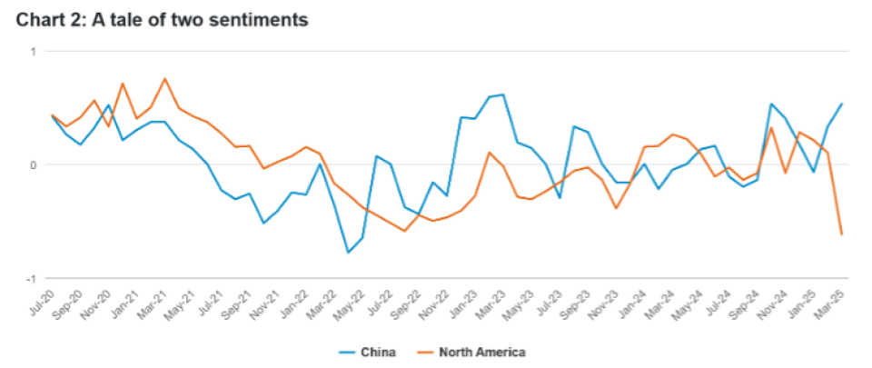 Offensichtlich beginnen sich die Märkte zu sorgen. Eine Aktienkorrektur im März liess die US-Aktien von ihren Allzeithochs fallen, und die Sorgen beginnen, sich auf das Verbrauchervertrauen auszuwirken. Das Ausmass dieses Rückgangs ist noch nicht klar, aber einige auf die USA fokussierten Analysten bemerken die Auswirkungen auf ihre Unternehmen: Einer beschreibt einen «signifikanten Rückgang der Verbraucherstimmung, da Sorgen über Zölle, Inflation und eine Verlangsamung des Verbraucherverhaltens zu einer sehr vorsichtigen Einschätzung der kurzfristigen Aussichten führen».