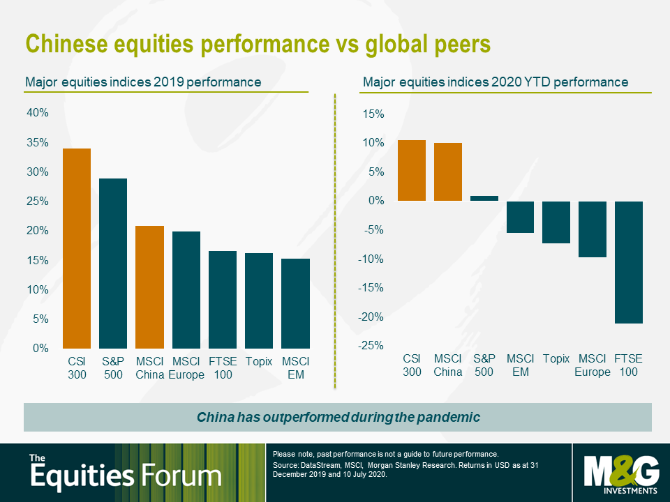 Chinesische Aktien haben in diesem Jahr bis dato mit positiven Renditen überzeugt. Das mag angesichts der Tatsache, dass Chinas Wirtschaft stark von Covid-19 betroffen war, seltsam erscheinen, meint Rob Secker von M&G.