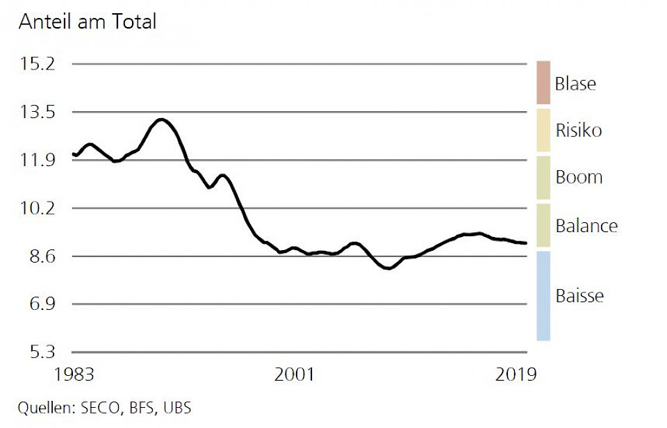 Gewinnt der Bausektor innerhalb der Volkswirtschaft an Gewicht, kann dies eine Überhitzung des Immobilienmarkts signalisieren.