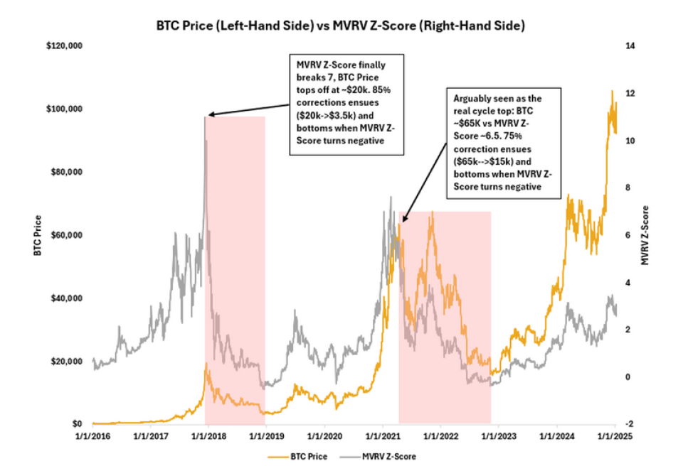 Fritz stellt ein Werkzeug vor, dass zumindest etwas Klarheit verschaffen soll: Der MVRV-Z Score. Hinter diesen Buchstaben verstecken sich drei Kennzahlen: