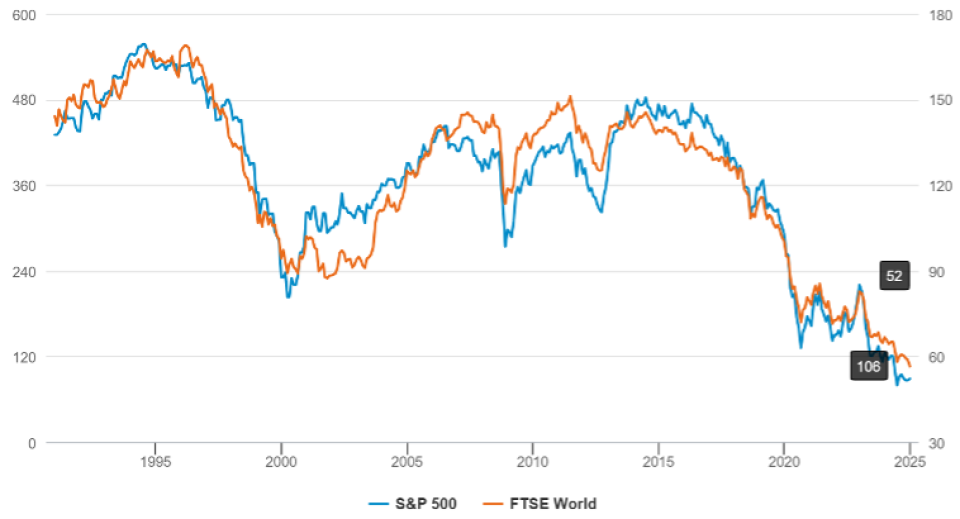 «Ein neues Umfeld entsteht, das weltweit ähnliche Wettbewerbsbedingungen für Aktien schafft. Dies unterstreicht die historische Dominanz des US-Marktes, die Risiken der aktuellen Konzentrationsniveaus und die attraktiven Chancen bei defensiven, dividendenzahlenden Unternehmen», schreibt Tristan Purcell, Assistant Portfolio Manager unter anderem für FF Global Dividend.