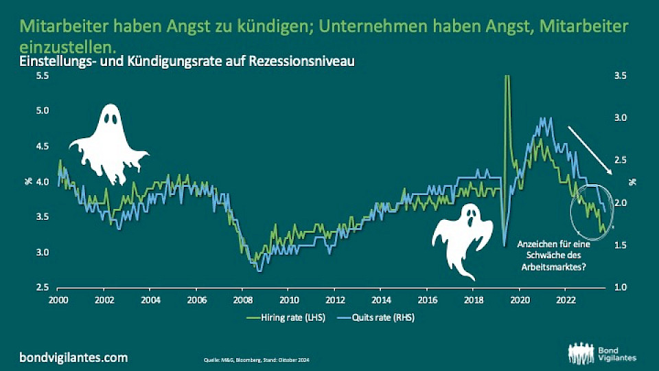 Der US-Arbeitsmarkt scheint in guter Verfassung zu sein, insbesondere nachdem die Zahl der Beschäftigten ausserhalb der Landwirtschaft im September die Erwartungen der Ökonomen übertroffen hat und die Arbeitslosenquote auf 4,1 % gesunken ist. Unter der Oberfläche sind jedoch sowohl die Einstellungs- als auch die Entlassungsraten auf ein Niveau gesunken, das normalerweise in Rezessionszeiten zu beobachten ist.
